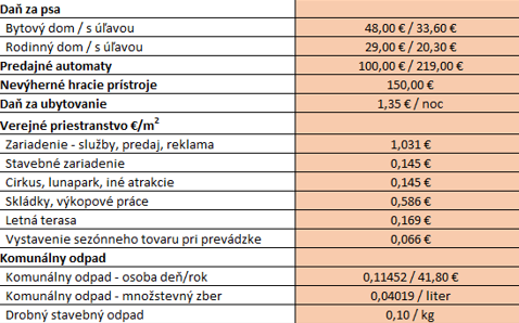 Konkrétne sadzby miestnych daní a poplatkov na rok 2026: