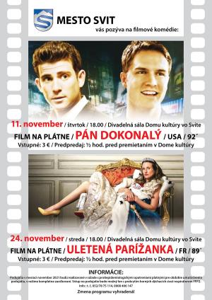 Mesto Svit pozýva verejnosť na premietanie americkej komédie Pán Dokonalý, ktoré sa uskutoční 11. novembra 2021 - štvrtok, o 18.00 hod. v divadelnej sále Domu kultúry vo Svite.