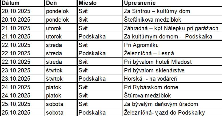 Čo nestihnete alebo nepatrí do VOK, môžete celoročne bezplatne odovzdať na zbernom dvore (okrem stavebného odpadu). Z dôvodu opakovaného zneužívania zberu v minulosti (napr. ukladanie nebezpečného odpadu, stavebnej sute či odpadov z okolitých obcí), bude zber monitorovaný pracovníkmi Technických služieb a Mestskou políciou. Občania sa budú musieť preukázať dokladom o trvalom pobyte v meste Svit. Umiestňovanie odpadu mimo kontajnerov je považované za čiernu skládku a je sankcionované podľa zákona o odpadoch.