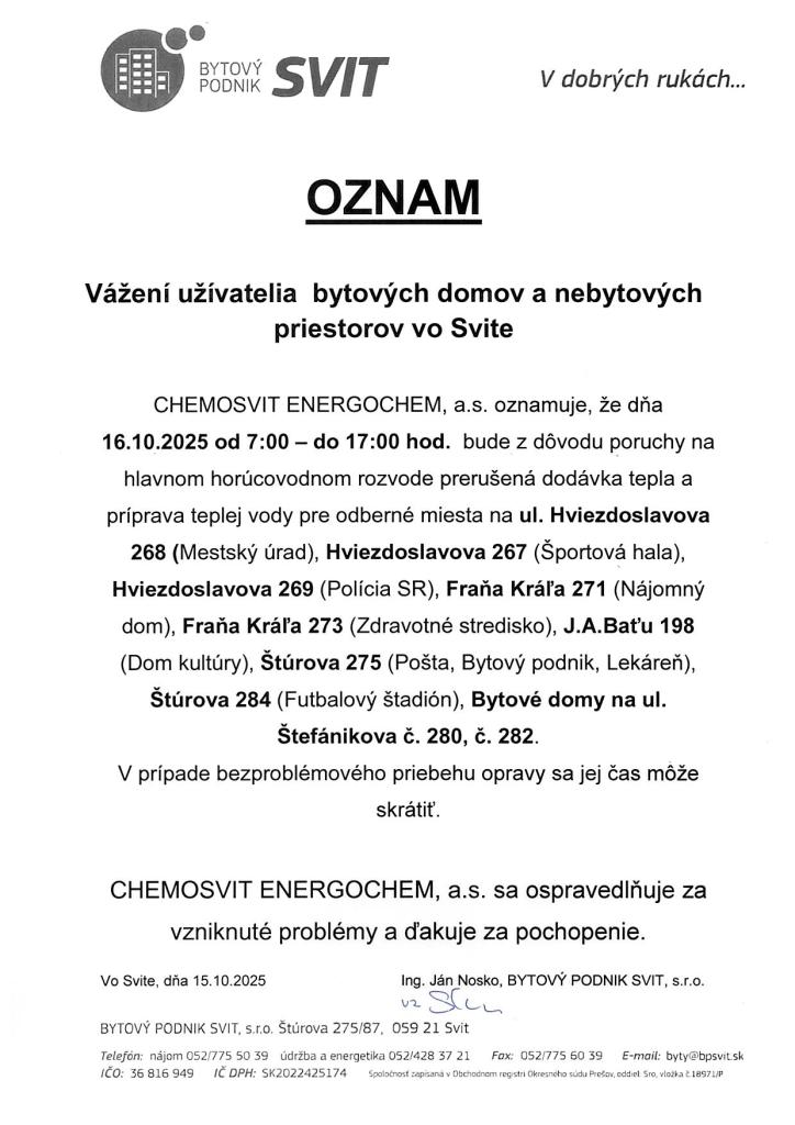 K Pamiatke zosnulých sa na cintoríne vo Svite každoročne koná ekumenická pobožnosť. Tento rok sa pri spoločných modlibách za našich blízkych stretneme 2. novembra o 15:00 hodine.