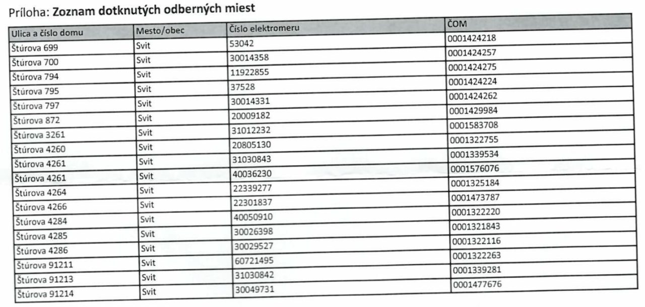 Východoslovenská distribučná spoločnosť oznamuje obyvateľom mesta, že dňa 27.11.2025 bude od 8.10 do 16.30 hod prerušená distribúcia elektriny z dôvodu pripojenia nového zariadenia distribučnej sústavy.