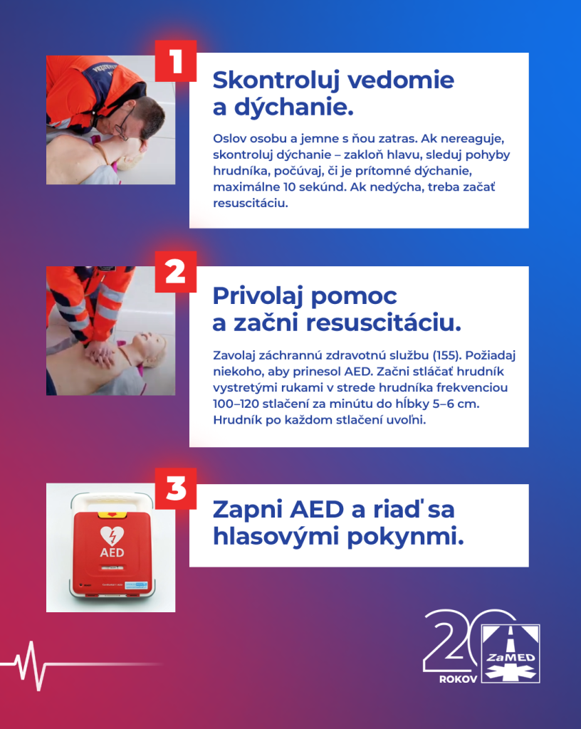 Preto prinášame občanom praktický návod na poskytnutie prvej pomoci pri náhlom zastavení srdca s dôrazom na použitie AED (automatizovaného externého defibrilátora). Informácie sú garantované odborníkmi v oblasti neodkladnej prednemocničnej zdravotnej starostlivosti a vychádzajú z aktuálnych odporúčaní prvej pomoci. Cieľom je zvýšiť povedomie obyvateľov o správnom postupe v kritickej situácii, kde každá sekunda rozhoduje. Obsah zdôrazňuje dôležitosť okamžitého konania a vyzýva verejnosť k šíreniu týchto život zachraňujúcich informácií.