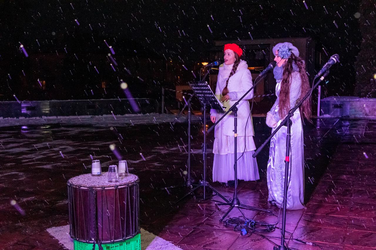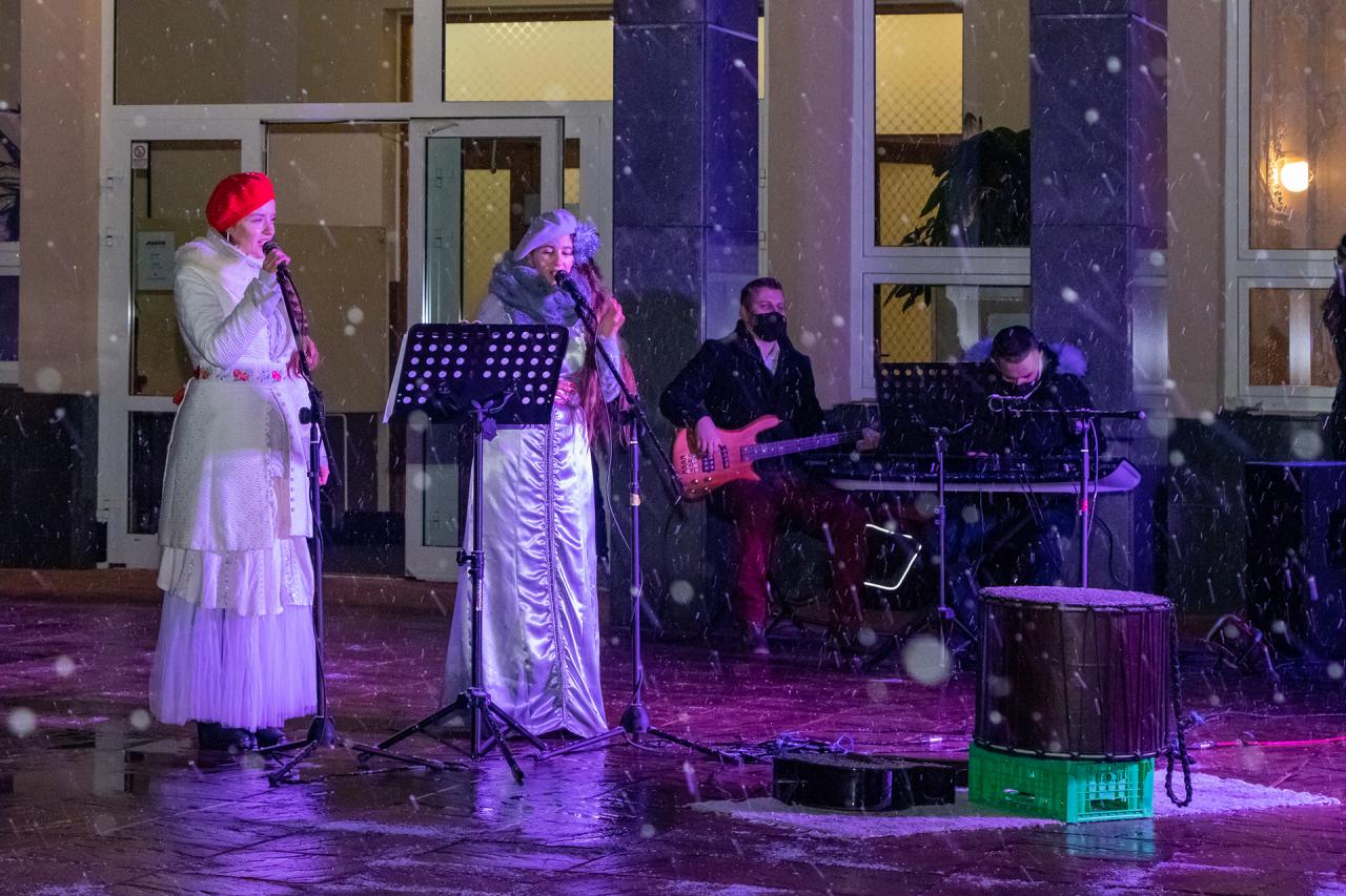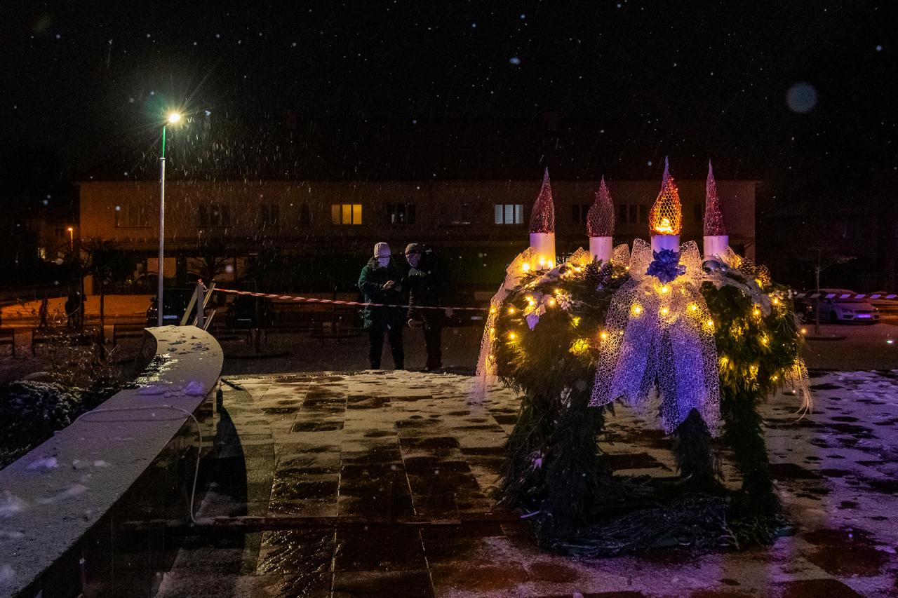 Pravú vianočnú atmosféru navodil nielen poletujúci sneh, ale najmä čarovné vystúpenie Súkromnej základnej umeleckej školy Fantázia Svit. Dve vianočné víly - Víla vianočných tradícií a Víla snehu a mrazu spríjemnili hŕstke divákov krátku chvíľu, ktorú trvalo rozsvietenie sviece. Pozvanie prijala i čestná hostka RNDr. Eva Nebusová, riaditeľka Strednej odbornej školy polytechnickej Svit J. A. Baťu, ktorá sa milým a povzbudivým slovom prihovorila verejnosti spolu s primátorkou Ing. Dášou Vojsovičovou. Primátorka vo svojom príhovore tiež pripomenula, že prvá adventná svieca nesie symbolický názov mier a práve ten v týchto časoch potrebujeme.