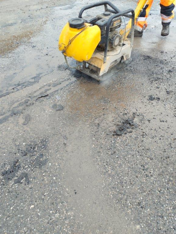 Použitím asfaltovej zmesi za studena boli sanované výtlky, pričom včerajšie počasie umožnilo realizáciu týchto opráv. Nevýhodou tejto technológie je vysoká cena materiálu a obmedzené trvanie takejto výplne výtlkov.Najvhodnejšie povetrnostné podmienky pre aplikáciu teohto postupu sú za využitia suchých vozoviek bez dažďa, alebo snehu a teploty nad nulou.