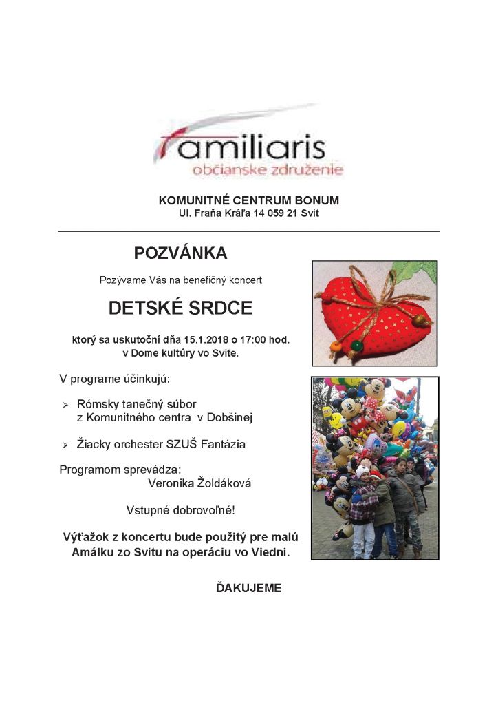 Vás srdečne pozývajú na benefičný koncert DETSKÉ SRDCE, ktorý sa uskutoční