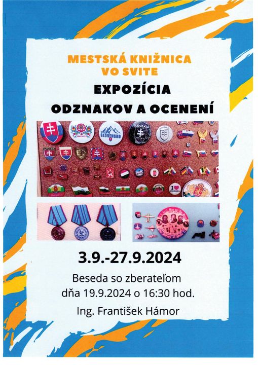 Mestská knižnica vo Svite Vás pozýva na besedu so zberateľom odznakov Ing. Františkom Hámorom, ktorá sa uskutoční 19. septembra o 16.30 v priestoroch knižnice.