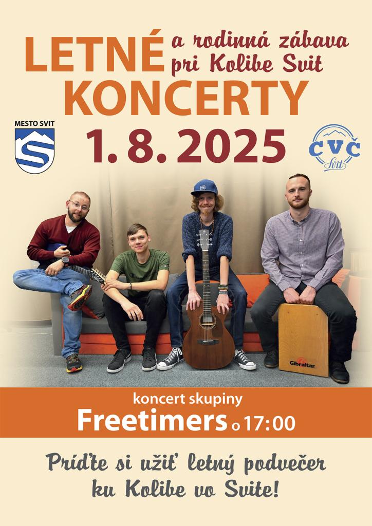Okrem akustického prevedenia Freetimers band Vás čakajú pred Kolibou vo Svite od 16.00 hod interaktívne hry, ktoré pripravujeme v spolupráci s Centrom voľného času. Zabavia sa nielen deti, ale aj rodičia. Príďte si užiť letný podvečer s rodinou a priateľmi ku Kolibe vo Svite! 🌟