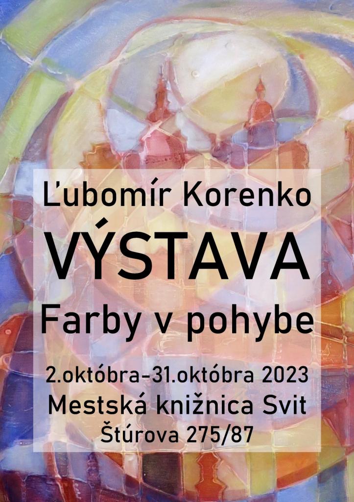Autor výstavy Ľubomír Korenko žije a tvorí v Poprade. Jeho expresívno-abstraktnú maľbu si môžete pozrieť vo výstavnej miestnosti MK vo Svite do 31. októbra 2023.