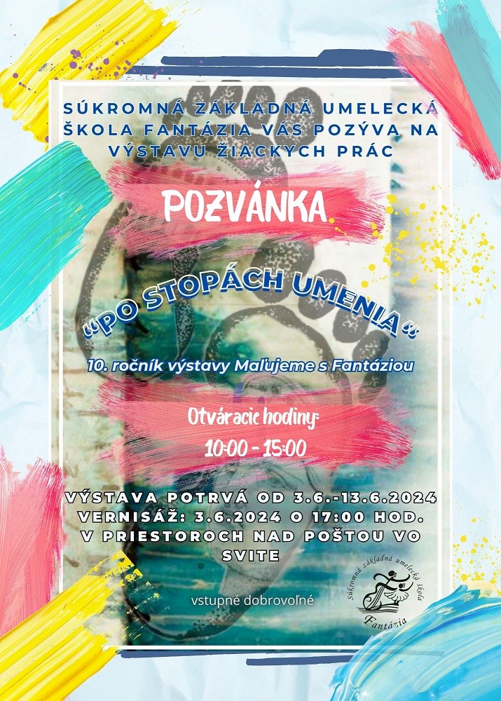 SZUŠ Vás pozýva na vernisáž a výstavu Po stopách umenia. V pondelok 3. júna o 17:00 hod v priestoroch nad poštou. Výstava potrvá do 13.6.2024.